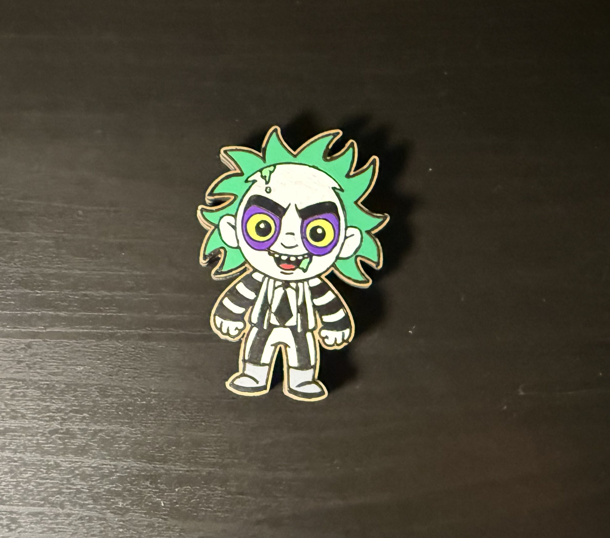 Hand painted Beetle Juice magnet small size. 3 inches tall and 2 inches wide.