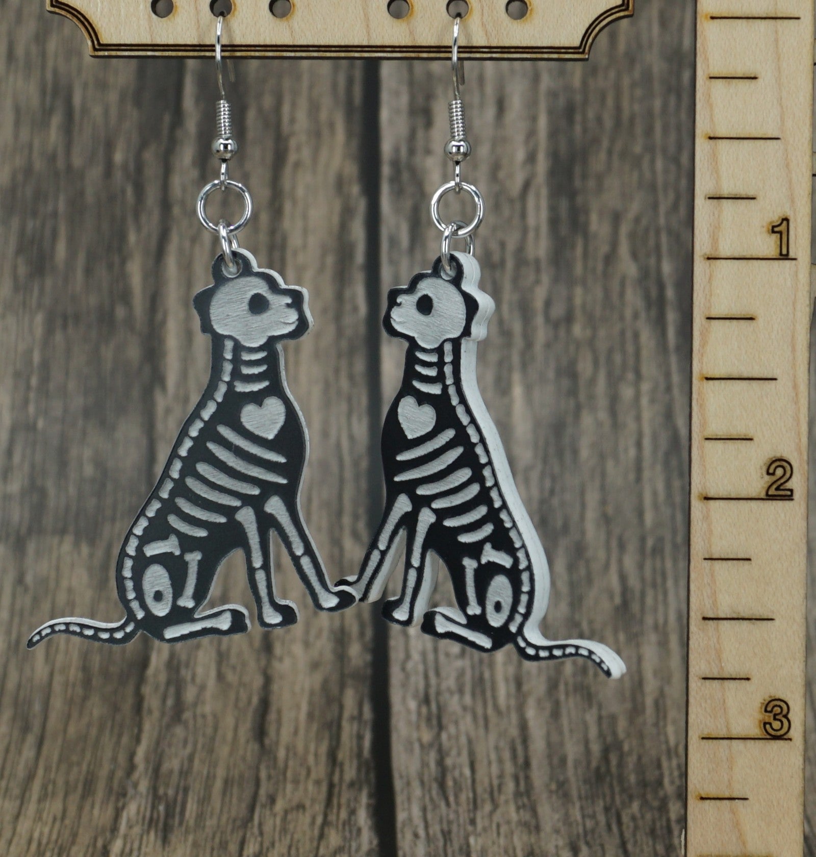 Black and white big dog earrings made from dual layer acrylic. Has same image front and back.