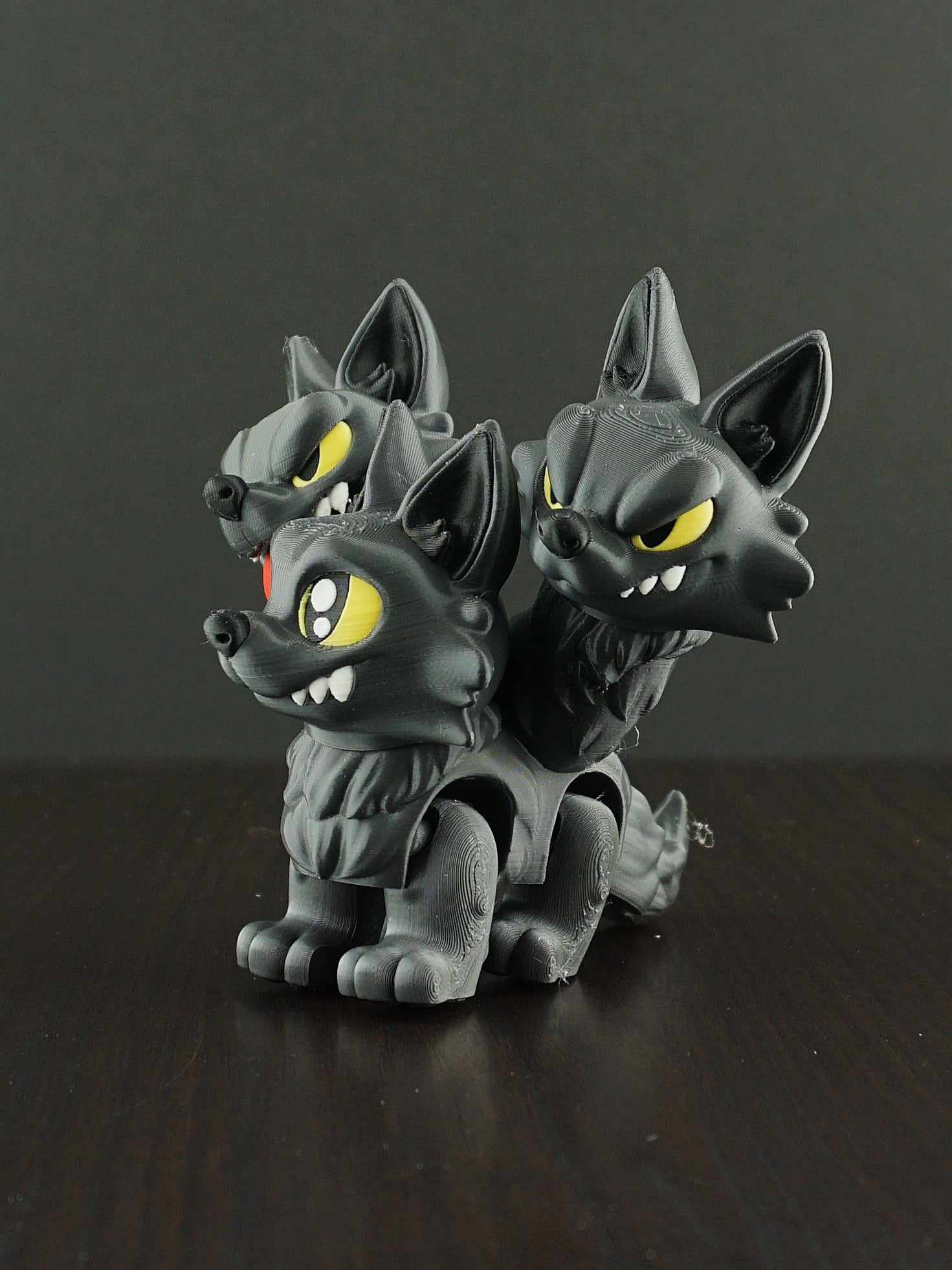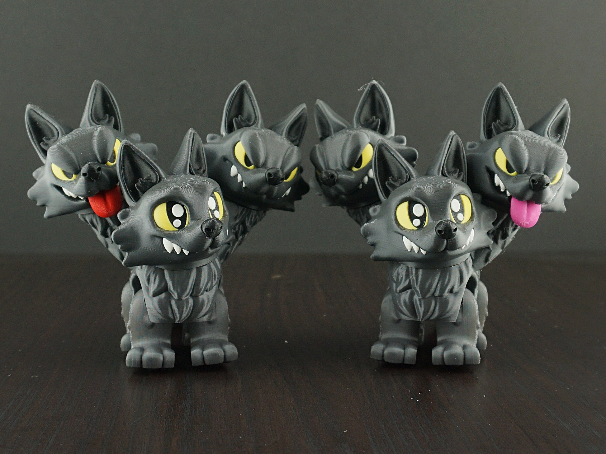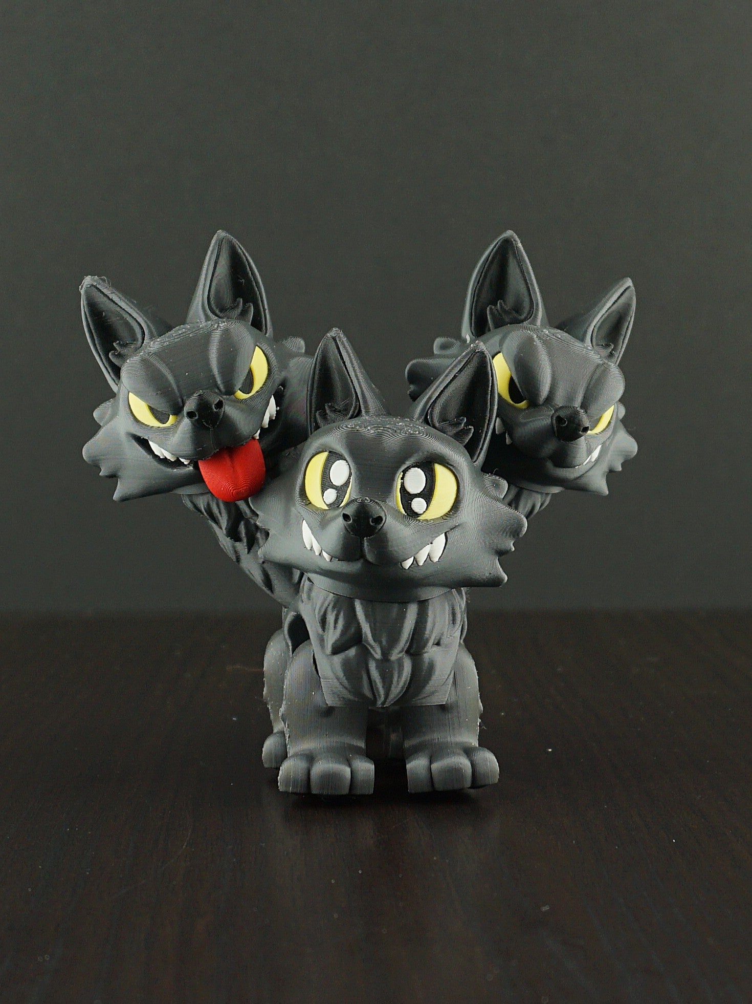 While Cerberus is busy guarding entry to the underworld why not have your own. It can guard your room, your desk, even your lunch! All three heads turn slightly to keep watch in multiple directions. Stands right around 4.5 inches tall at it's tallest ear.