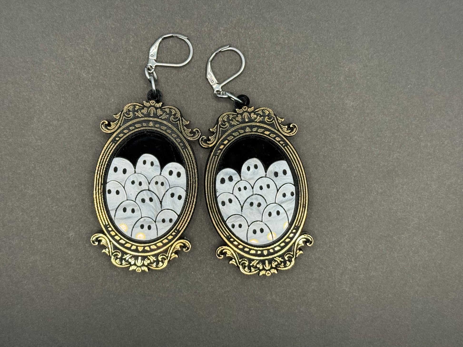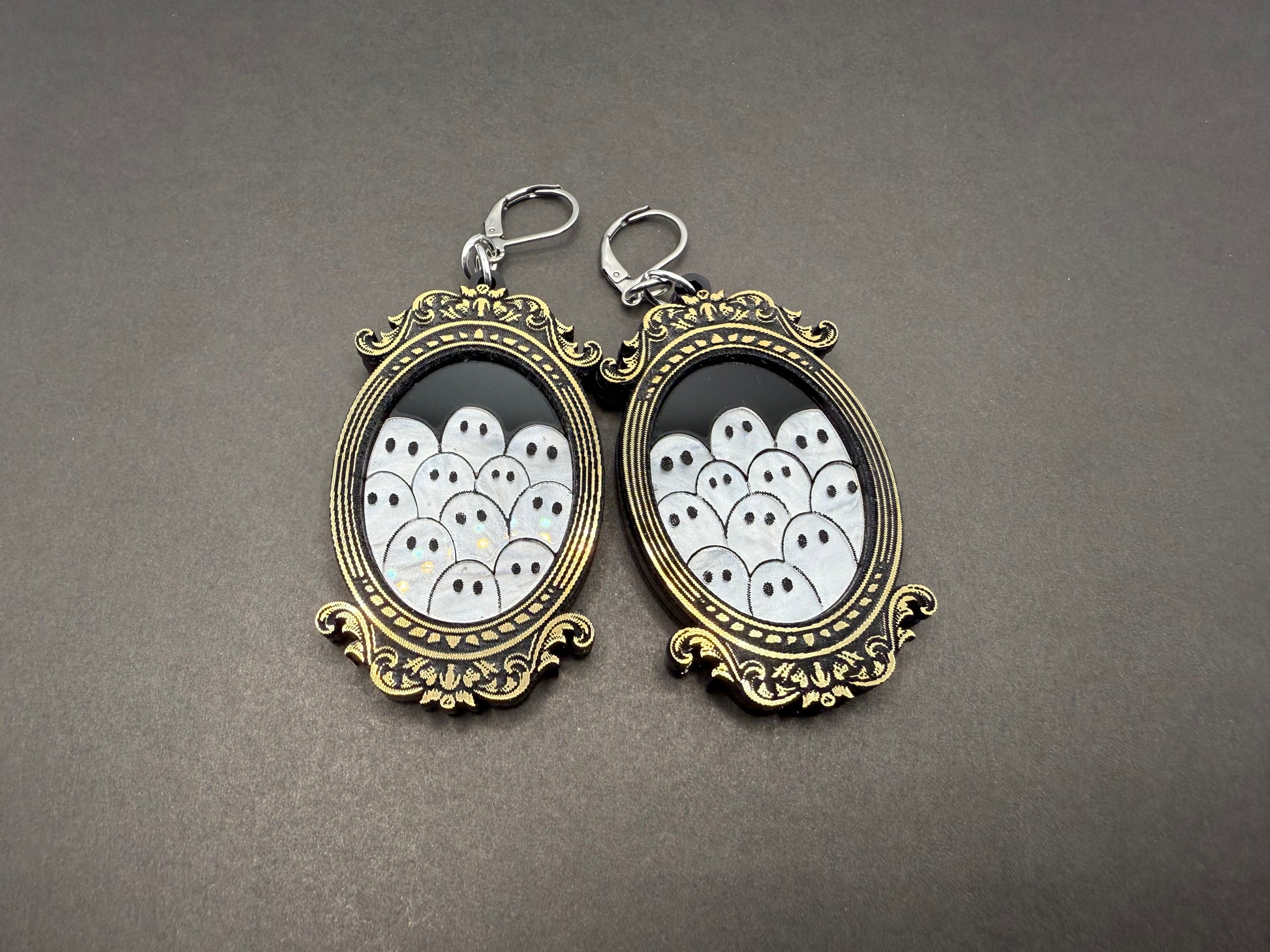 An elegantly framed gathering of ghosts. Made from acrylic and hand painted