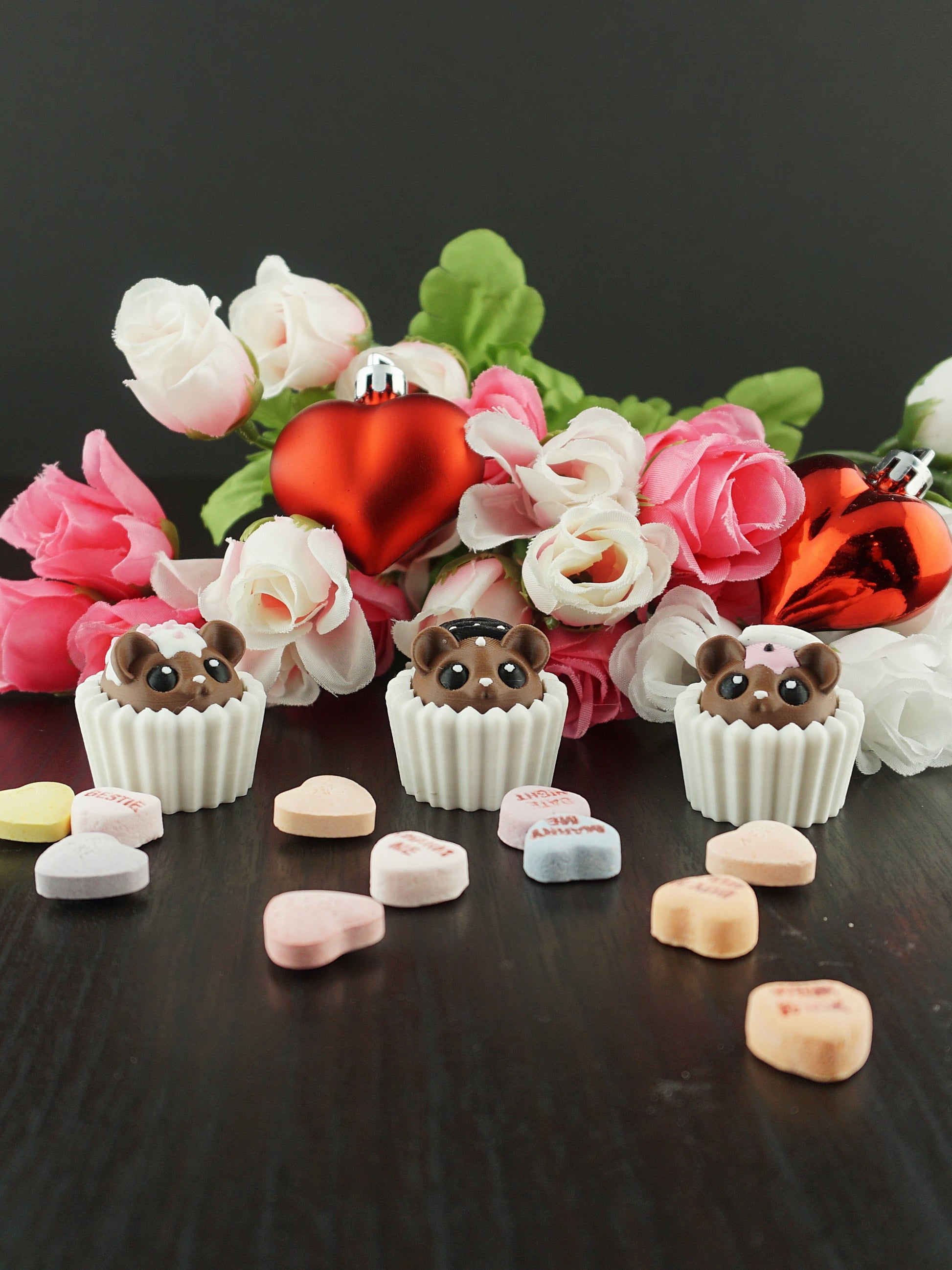Cute little bonbon clickers that look good enough to eat ( please don't) and make the perfect Valentines day gift. They Come in different animal forms canine, bunny, mouse and bat all selected at random. Choose from chocolate, and white chocolate versions.