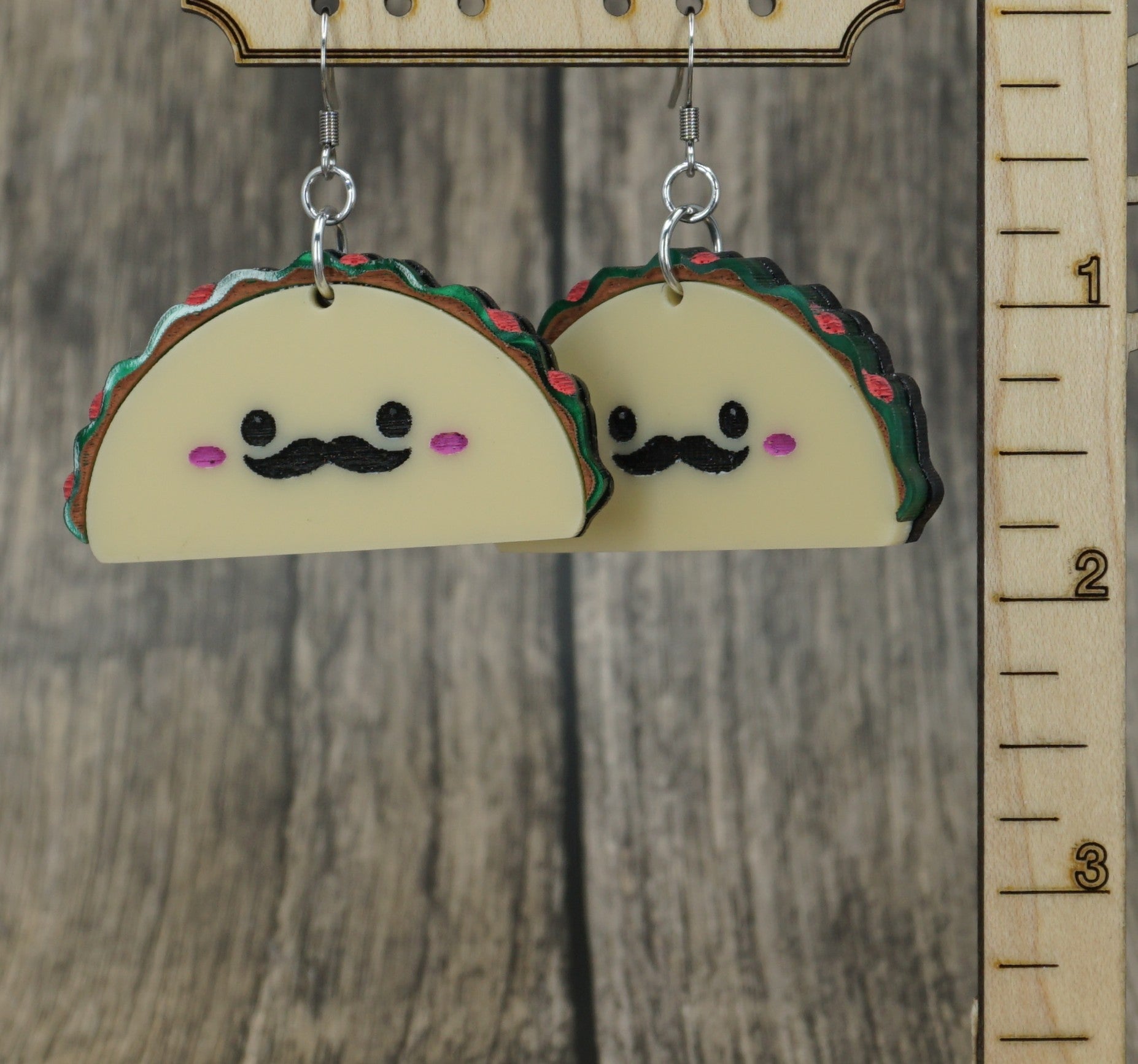 Who doesn't love tacos? Show your love for them even more with these cute taco earrings. Made from acrylic and hand painted.