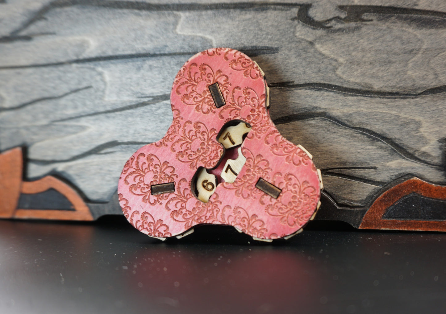 Triple digit HP counter in pink with a skull damascus pattern on fron and back. Laser cut and hand stained and finished.
